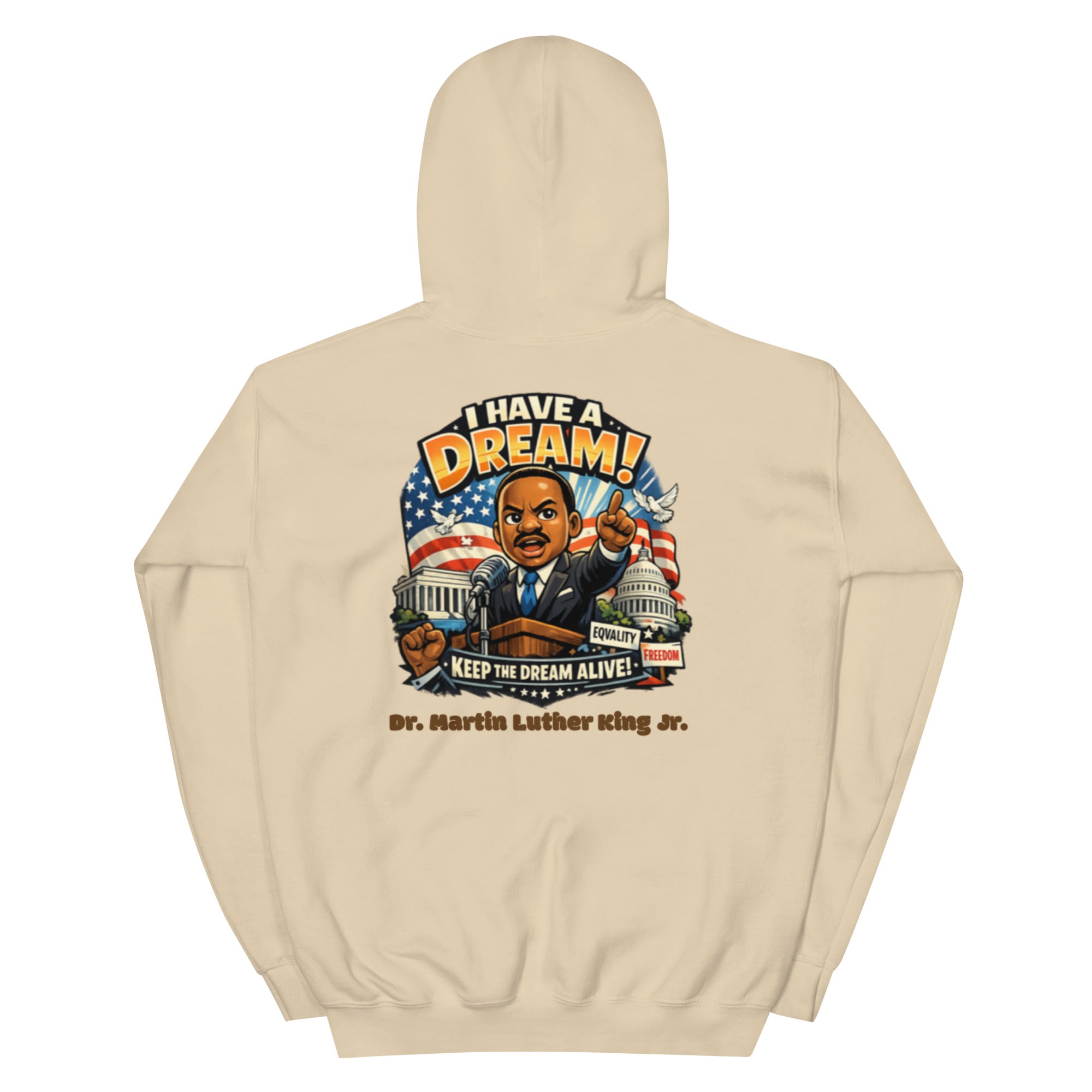This hoodie is a timeless tribute to the legacy of the late Dr. Martin Luther King Jr., designed to embody dignity, purpose, and hope. Crafted with premium materials and a clean, powerful aesthetic, it serves as both a statement piece and a symbol of enduring change. Along one sleeve, the word “Equality” is elegantly placed—an ever-present reminder of the principle Dr. King dedicated his life to advancing. Every detail reflects respect, intention, and the quiet strength of a movement that reshaped history.