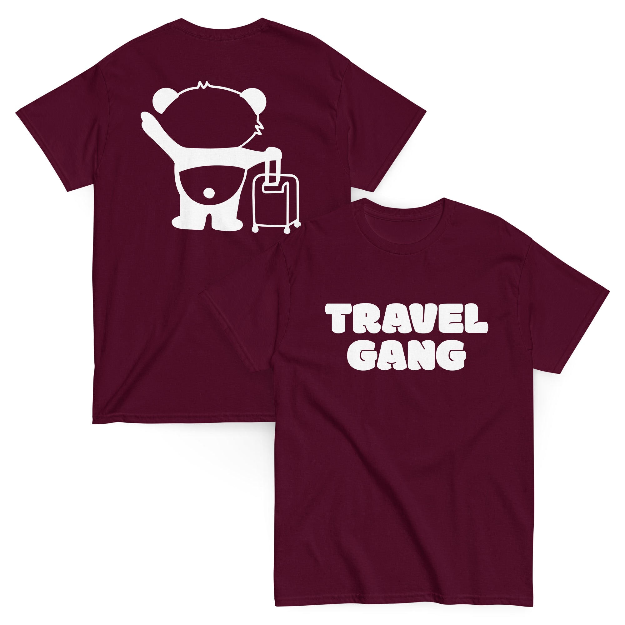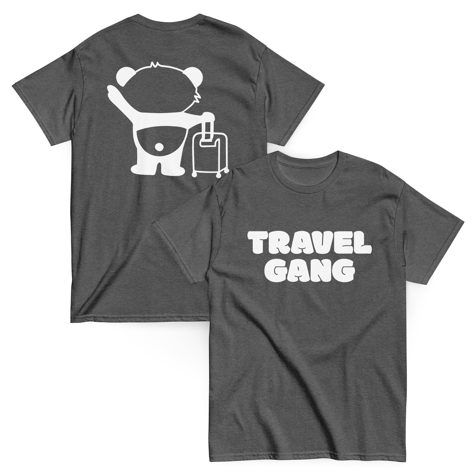 The Travel Gang Heavyweight T-Shirt is built for the ones who stay ready for the next trip. Featuring “Travel Gang” in bold lettering on the front, and our signature “Traveling Panda” design on the back, this shirt brings the perfect mix of clean style and travel energy.